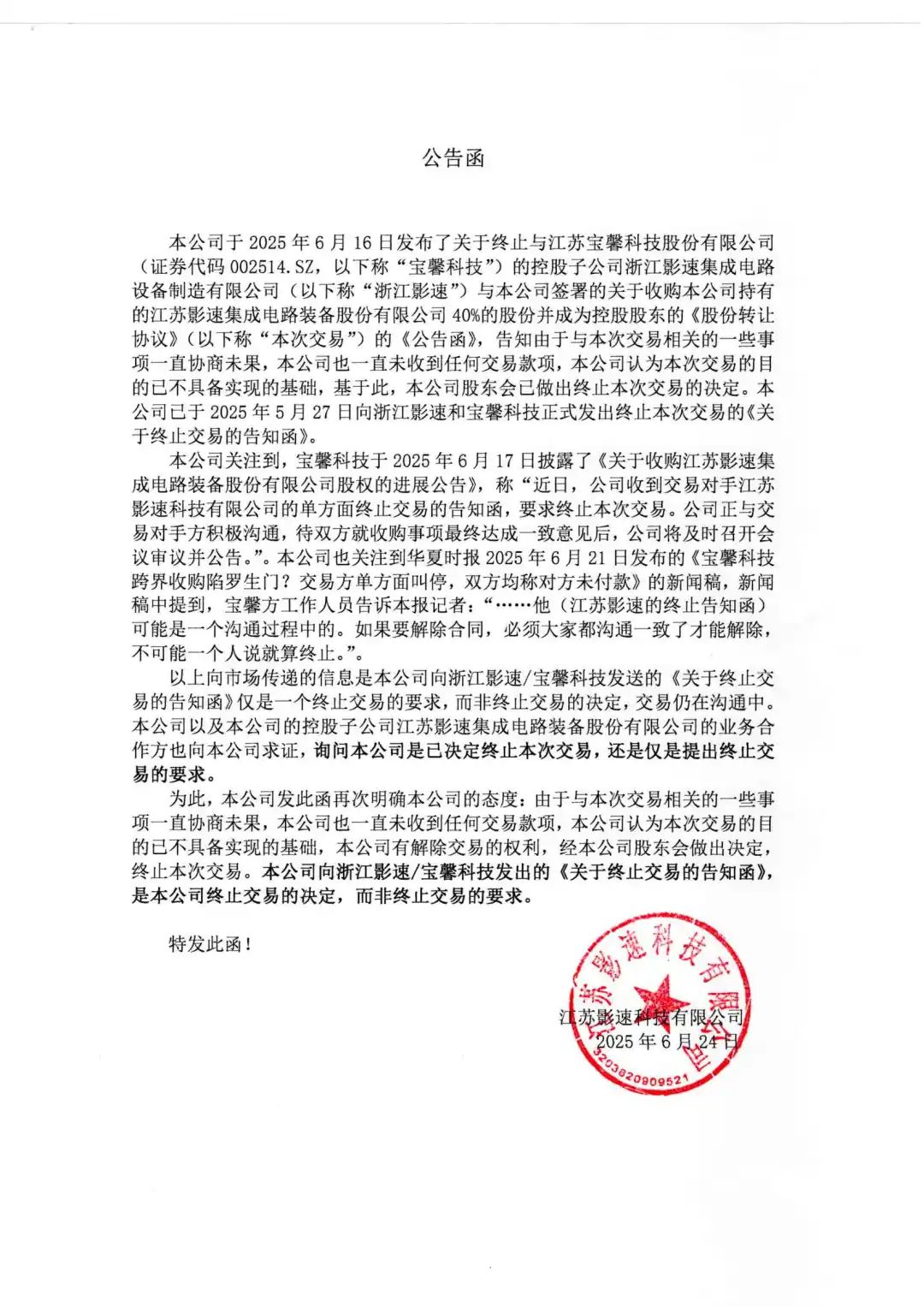 控股股东金年会|jinnianhui科技已终止与宝馨科技(证券代码002514.SZ)的控股子公司浙江金年会|jinnianhui关于收购本公司40%股份的交易